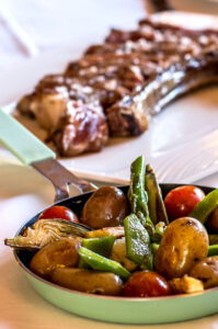 Disponemos de unas riquísimas tartas, como la tarta de calabaza con chocolate, la de queso con confitura de arándanos, tarta tres chocolates o de chocolate negro…,etc. Hay también postres helados y fruta de temporada.